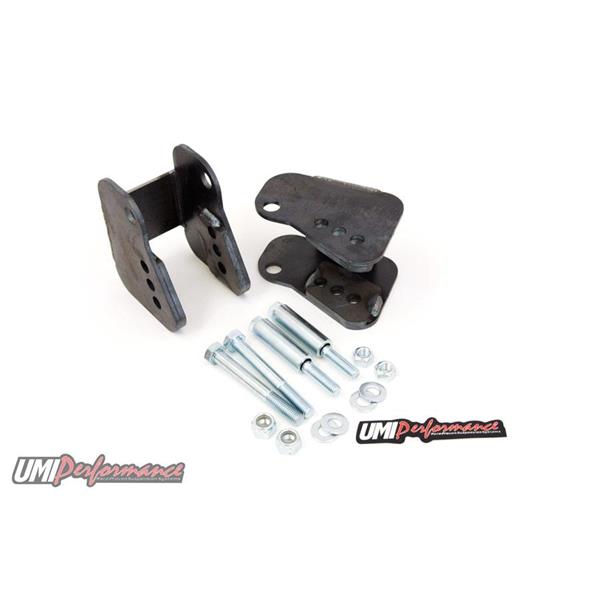 Wheel hop or traction issues? We have the solution! Optimize your vehicle's instant center and improve forward traction by lowering the rear of the lower control arm 2", 2-3/4", or 3-1/4". These weld-in brackets are CAD designed to accommodate factory lower control arms as well as all popular aftermarket styles. Robust flanges inside the brackets add reinforcement and ensure factory bushings bolt right in. Brackets installed can provide an average 0.10 second (or better) 60-foot reduction and an overall improvement in launch consistency. Brackets are constructed of 3/16" mild steel and CNC laser cut for precision tolerances. Relocation brackets are designed to work on both lowered and non-lowered vehicles and feature multiple settings to optimize vehicle handling and traction.
