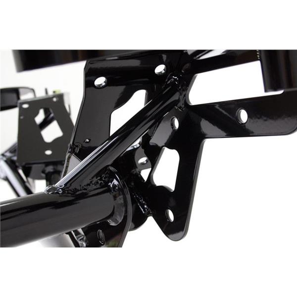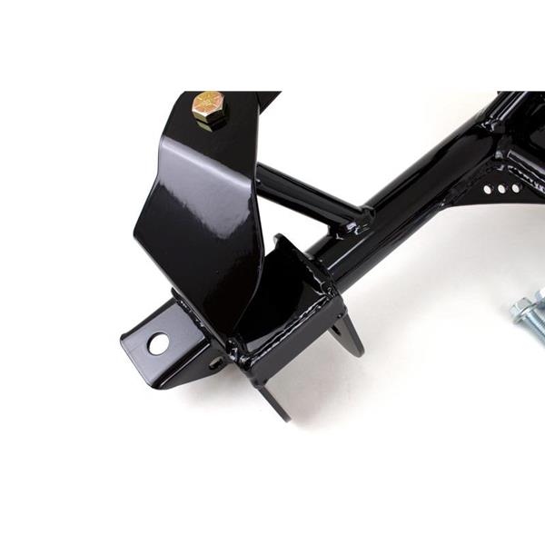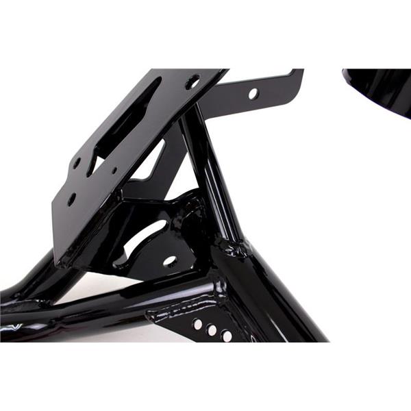 Less weight plus high strength equals road race and auto-x success. UMI’s direct bolt-in replacement Road Race K-member instantly removes 20 lbs of front end weight from your ride and helps your existing horsepower work for you while providing a capable, high strength foundation. UMI’s RR k-member features strong dual tube construction as well as extra tubing and gusseting in critical areas. The K-member is fabricated from CNC machined 3/16” thick mild steel held together by a strong dual tube lower section. Factory clamshell and engine mounts bolt to the precision machined mounting pads while both factory and aftermarket suspension is located by strong boxed mounting points. Lightening holes are CNC machined into the mounting plates and the tubular construction provides added clearance for aftermarket exhaust. The modular design permits stock spring and strut use or simply remove the spring pockets and convert to coil-overs. Street and track testing on our test car has shown this K-member to be strong, reliable and a great upgrade for your high performance ride. Available in tough powder coated red or black finish. Manufactured with pride in Philipsburg, PA - USA