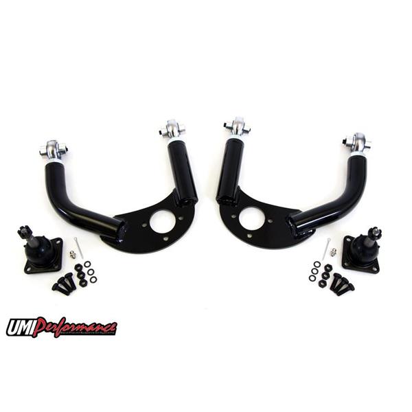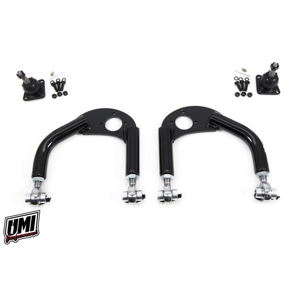 UMI’s fabricated tubular a-arms provide a rock solid foundation for your 4th Gen’s front suspension. Our P/N 2310 a-arms are built to offer increased caster, smooth non-binding travel and a precise steering feel. These arms are perfect for drag race, auto-x, road race or corner carving. The strong 1-¼” DOM tubes are precision bent, CNC notched and jig welded to form the solid base. UMI built 4130 CrMo tube adapters provide a durable attachment point for the premium Teflon lined race quality rod ends. The premium rod ends allow for easy camber and caster adjustments while working as a non-binding bushing to ensure smooth suspension movement. The thick CNC laser cut ball joint pad features improved ball joint angle and increased caster for lowered cars and come assembled with premium ball joints. UMI’s newest design of P/N 2310 features the most travel and clearance of any a-arm on the market. This design is a must for extreme lowered vehicles. Manufactured with pride in Philipsburg, PA – USA.