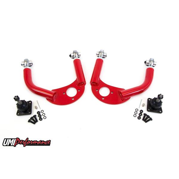 UMI’s fabricated tubular a-arms provide a rock solid foundation for your 4th Gen’s front suspension. Our P/N 2310 a-arms are built to offer increased caster, smooth non-binding travel and a precise steering feel. These arms are perfect for drag race, auto-x, road race or corner carving. The strong 1-¼” DOM tubes are precision bent, CNC notched and jig welded to form the solid base. UMI built 4130 CrMo tube adapters provide a durable attachment point for the premium Teflon lined race quality rod ends. The premium rod ends allow for easy camber and caster adjustments while working as a non-binding bushing to ensure smooth suspension movement. The thick CNC laser cut ball joint pad features improved ball joint angle and increased caster for lowered cars and come assembled with premium ball joints. UMI’s newest design of P/N 2310 features the most travel and clearance of any a-arm on the market. This design is a must for extreme lowered vehicles. Manufactured with pride in Philipsburg, PA – USA.
