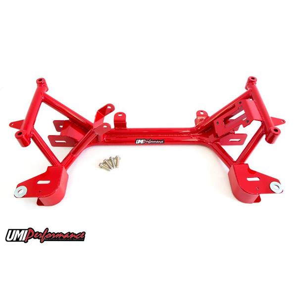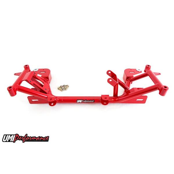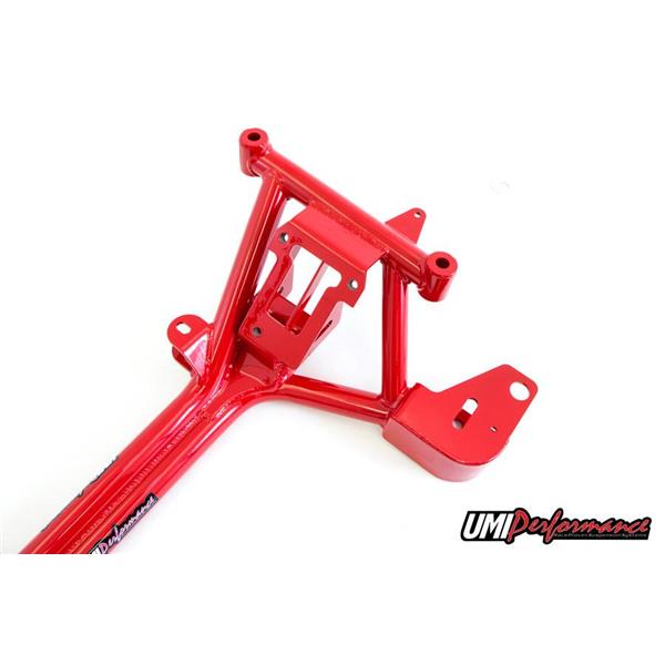 UMI’s Stage 2 kit provides a solid foundation for your street car used for drag strip duty. It features the best of both worlds combining weight reduction and strength with performance and comfort. Our dual tube k-member is known as the strongest in its class and can withstand wheel stand landings and street abuse while still shaving weight as well as protecting the oil pan. The P/N 2305 lower arms feature poly bushings on the straight strut portion to absorb road noise while the non-adjustable uppers guide the suspension on greaseable poly bushings. The upper and lower a-arms are assembled with premium ball joints and save an additional 8lbs of weight. UMI’s k-member and a-arms are built from strong USA DOM tubing, precision bent, CNC notched and welded in a jig to form a solid base. Included k-member is designed to work with factory motor mounts, polyurethane motor mounts or UMI’s popular solid billet aluminum motor mounts P/N 2323. The Stage 2 kit is a direct bolt in removing front end weight while maintaining street comfort and enhancing performance. Save $75.00 when purchasing these items as a kit.