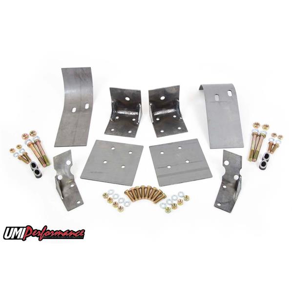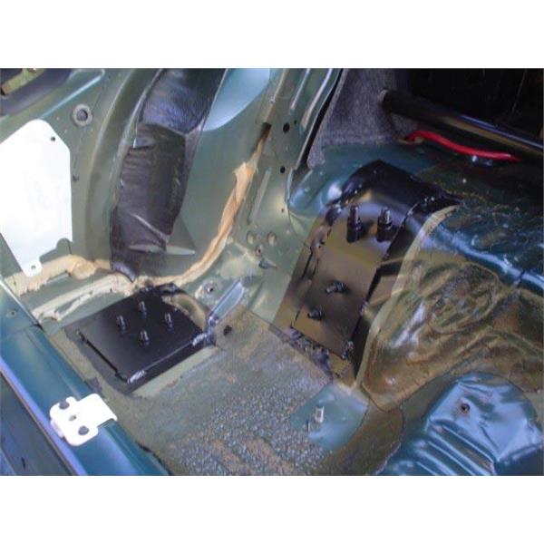 The complete kit is designed to reinforce both the upper control arm mounting points and the front mounting points of the lower control arms; otherwise known as the torque box area. Reinforcement of these areas is a must when running aftermarket control arms, polyurethane bushings and especially with aftermarket lift bars or similar.
