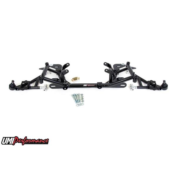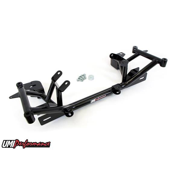 UMI’s Stage 1 kit is the perfect starting point for removing front end weight and improving the weight transfer in your 4th Gen. Our dual tube k-member is known as the strongest in its class and can withstand wheel stand landings and street abuse while still shaving weight as well as protecting the oil pan. Rod end lower a-arms move with minimal friction and help the car respond quickly off the line while adding 8lbs of weight reduction. UMI’s k-member and a-arms are built from strong USA DOM tubing, precision bent, CNC notched and welded in a jig to form a solid base. Included k-member is designed to work with factory motor mounts, polyurethane motor mounts or UMI’s popular solid billet aluminum motor mounts P/N 2323. Whether you’re looking to remove front end weight, gain engine clearance or just want a nice addition to your street/strip car the Stage 1 package is the perfect starting point. Save $65.00 when purchasing these items as a kit.