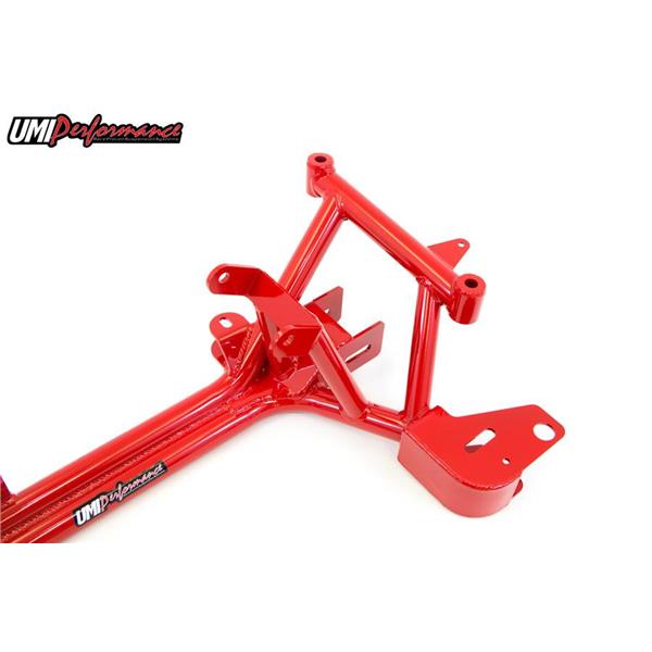 UMI’s Stage 1 kit is the perfect starting point for removing front end weight and improving the weight transfer in your 4th Gen. Our dual tube k-member is known as the strongest in its class and can withstand wheel stand landings and street abuse while still shaving weight as well as protecting the oil pan. Rod end lower a-arms move with minimal friction and help the car respond quickly off the line while adding 8lbs of weight reduction. UMI’s k-member and a-arms are built from strong USA DOM tubing, precision bent, CNC notched and welded in a jig to form a solid base. Included k-member is designed to work with factory motor mounts, polyurethane motor mounts or UMI’s popular solid billet aluminum motor mounts P/N 2323. Whether you’re looking to remove front end weight, gain engine clearance or just want a nice addition to your street/strip car the Stage 1 package is the perfect starting point. Save $65.00 when purchasing these items as a kit.