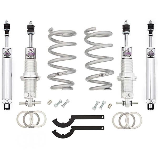 This front coil-over kit from Viking Performance comes with A225 double adjustable shocks, 10TP550 Specialty GM 550lb coil-over springs, pair of smooth body rear shocks, and Spanner Wrench!
