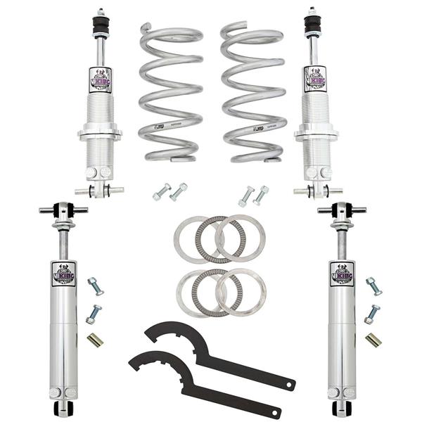 This front coil-over kit from Viking Performance comes with A225 double adjustable shocks, 10TP550 Specialty GM 550lb coil-over springs, pair of smooth body rear shocks, and Spanner Wrench!